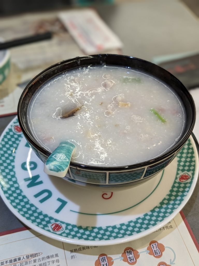 3品目はピータンと肉がはいったお粥(皮蛋瘦肉粥)。48香港ドルでした。