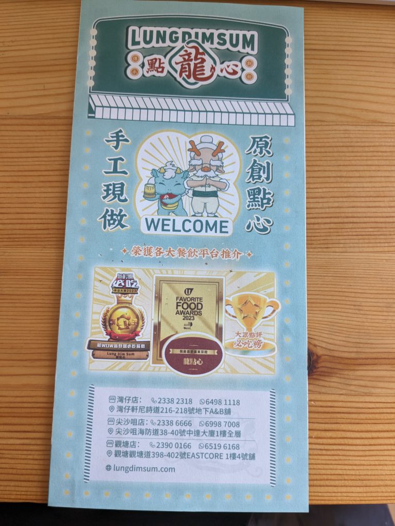 2品目は、点心セット(龍餃子)。50香港ドルでした。