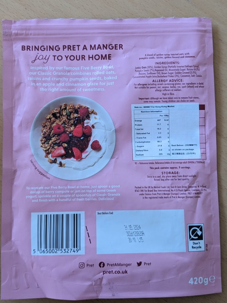 ちょっと高級系スーパーで、イギリスのグラノーラを買ってみました。