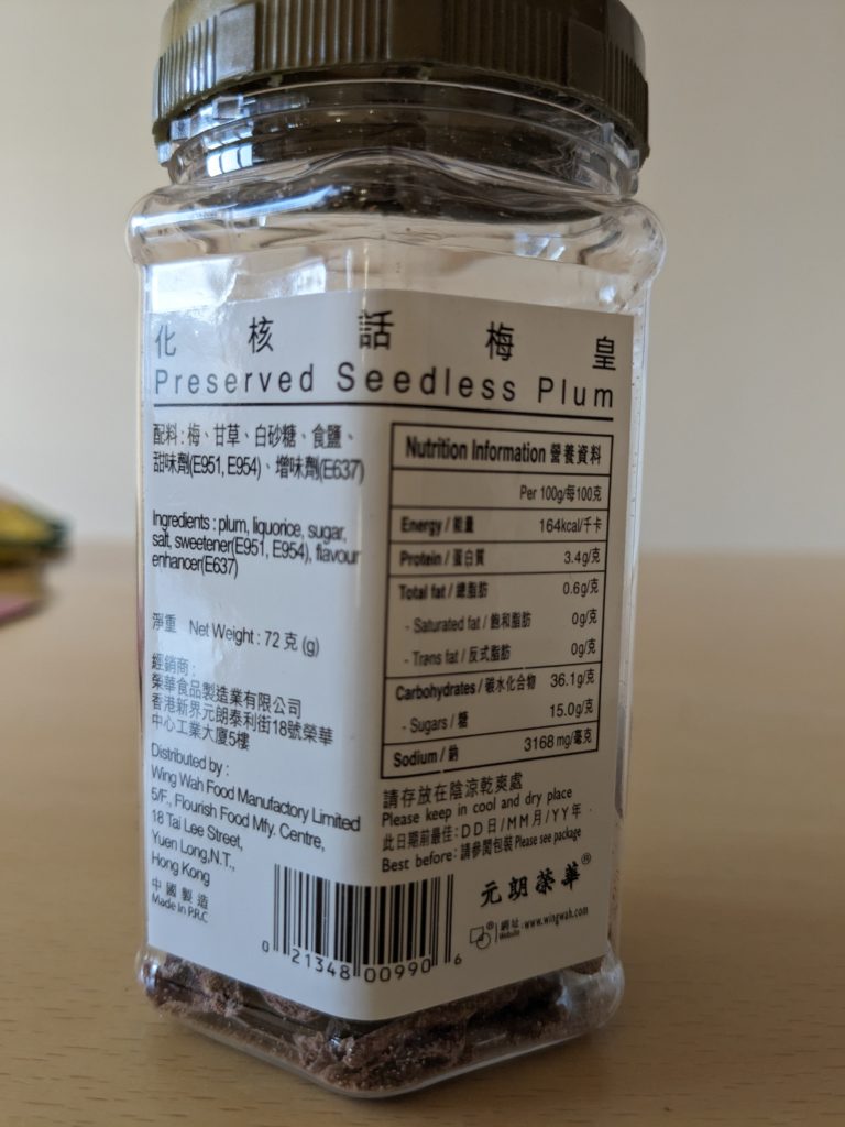 日本のスーパーで売っている干し梅よりも多いし、添加物も少なめだから買いました。