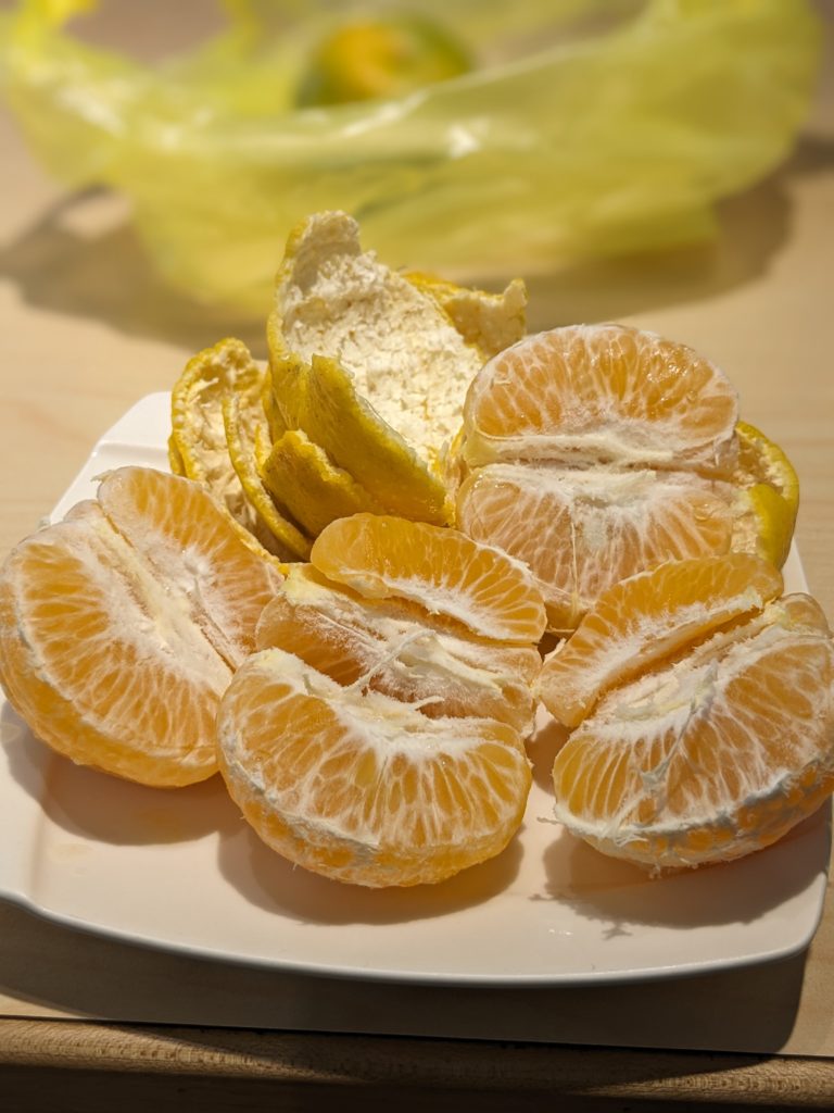 果物も断念しないといけないか・・・と諦めかけていた頃にようやく見つかりました!柑橘類。手でむけそうだったので買ってみました。