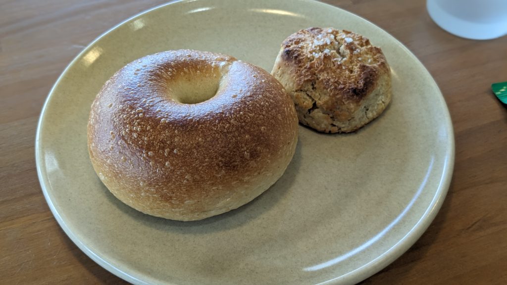 ここはグッとこらえてプレーンベーグルとスコーンをいただくことにしました。