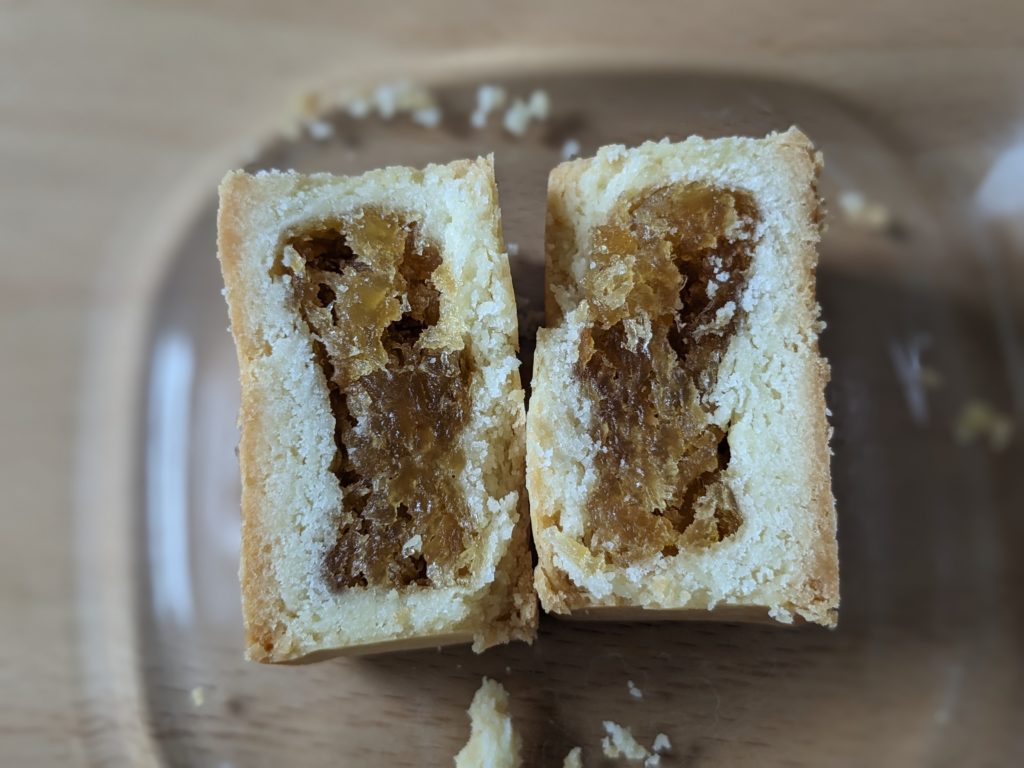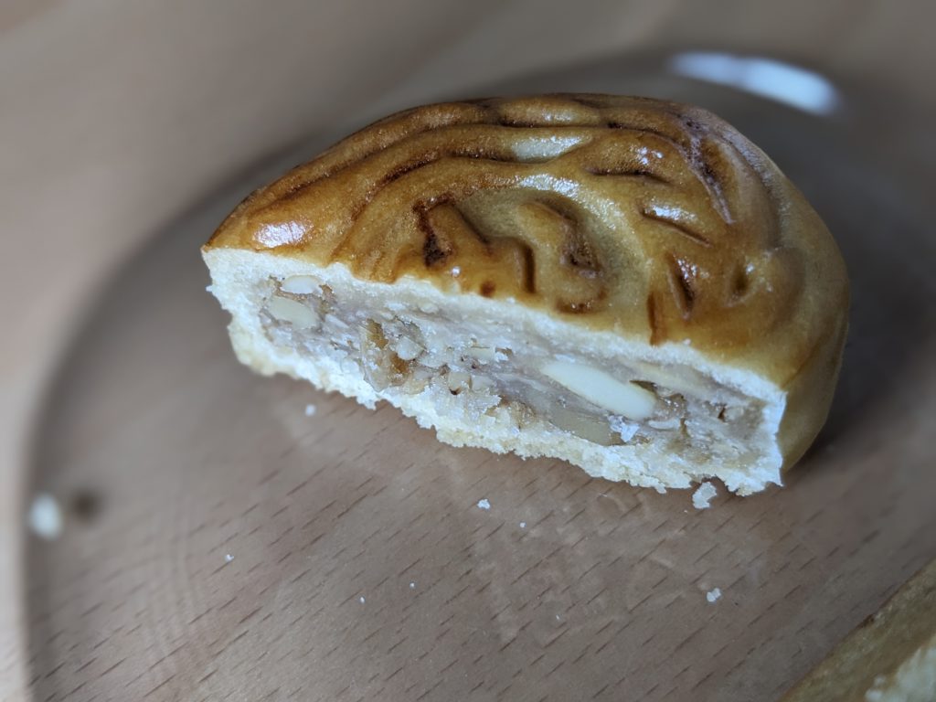 月餅なのに甘さはしつこくなくて、半分に切らなければひとりで1個食べていただろうと思います。