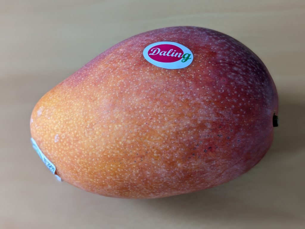 たまたまマンゴーのひとつからこのシールが見えて思わずにんまり。はじめまして、台湾のマンゴーよ。