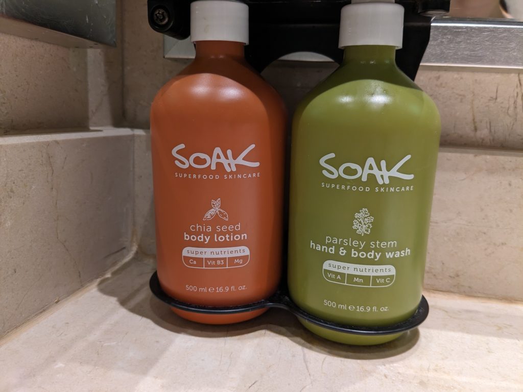 これ持っていけばよかったなと後悔したものはサンダル(またはビーサン)です。使い捨てスリッパは一応あって履いてたんですけど、足は疲れるし、水回りが濡れているとスリッパは湿るし。。。