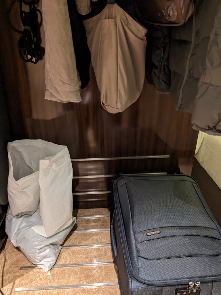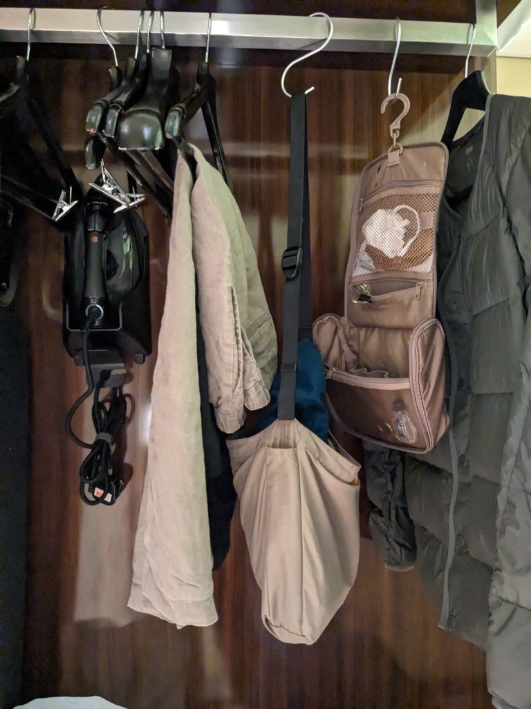 カバンとかこまごまとしたものを掛ける場所はないので、S字フックを持参するといいですよ。
