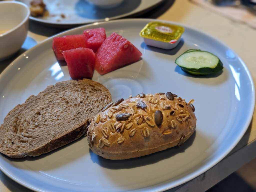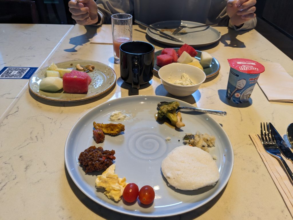 朝食会場は室内と屋外どちらもあって自由に選べるみたいでした。が、屋外は暑いから無条件室内です(笑)