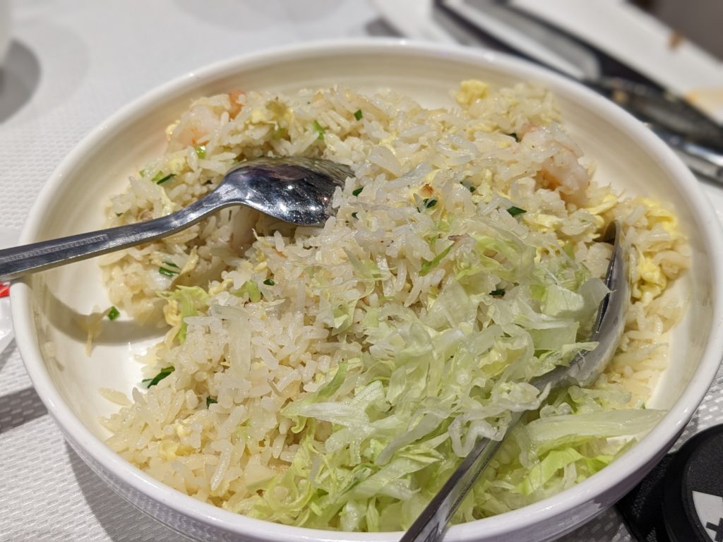 カニはまだ出てきません、続いてはエビチャーハン。