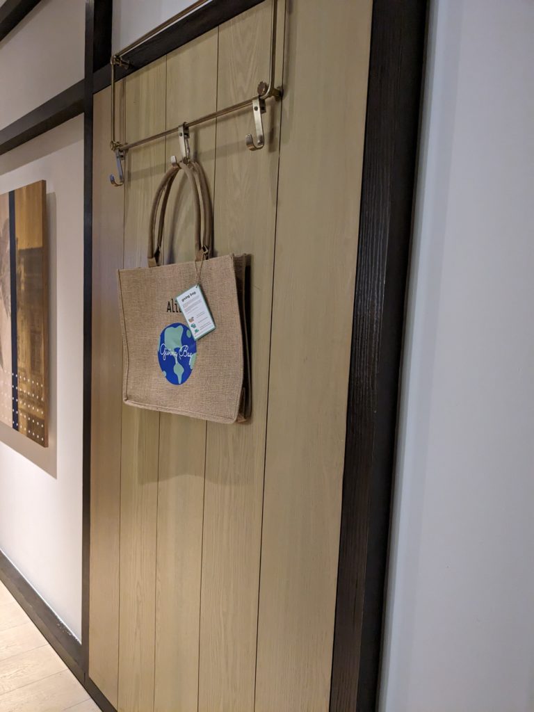 ドアを開けると廊下があって、壁には何やらエコバッグらしき袋が。これ実はエコバッグではないんです。