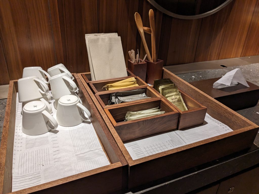 エレベーター前にスナックと飲み物のコーナーがあって無料でした。