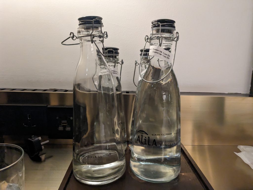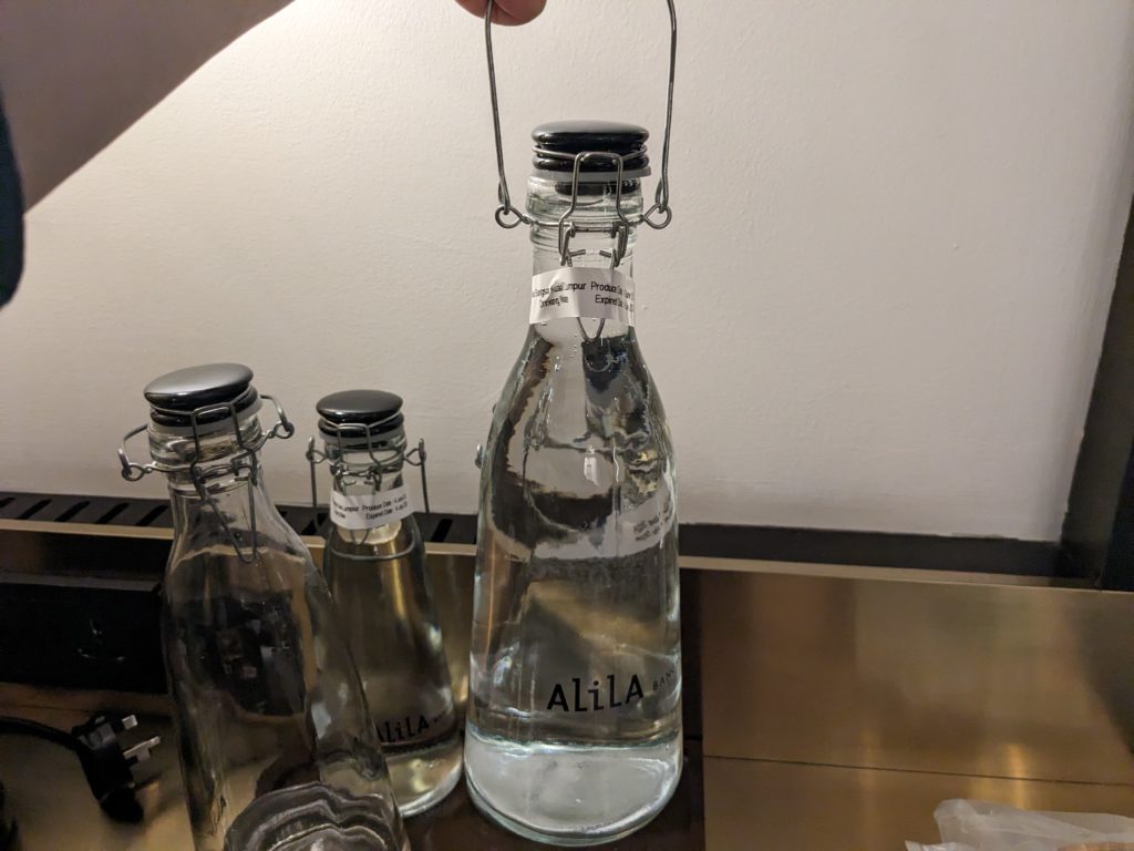 飲用水がペットボトルではなく瓶だったのには驚きました。これも環境を配慮してのことでしょう。