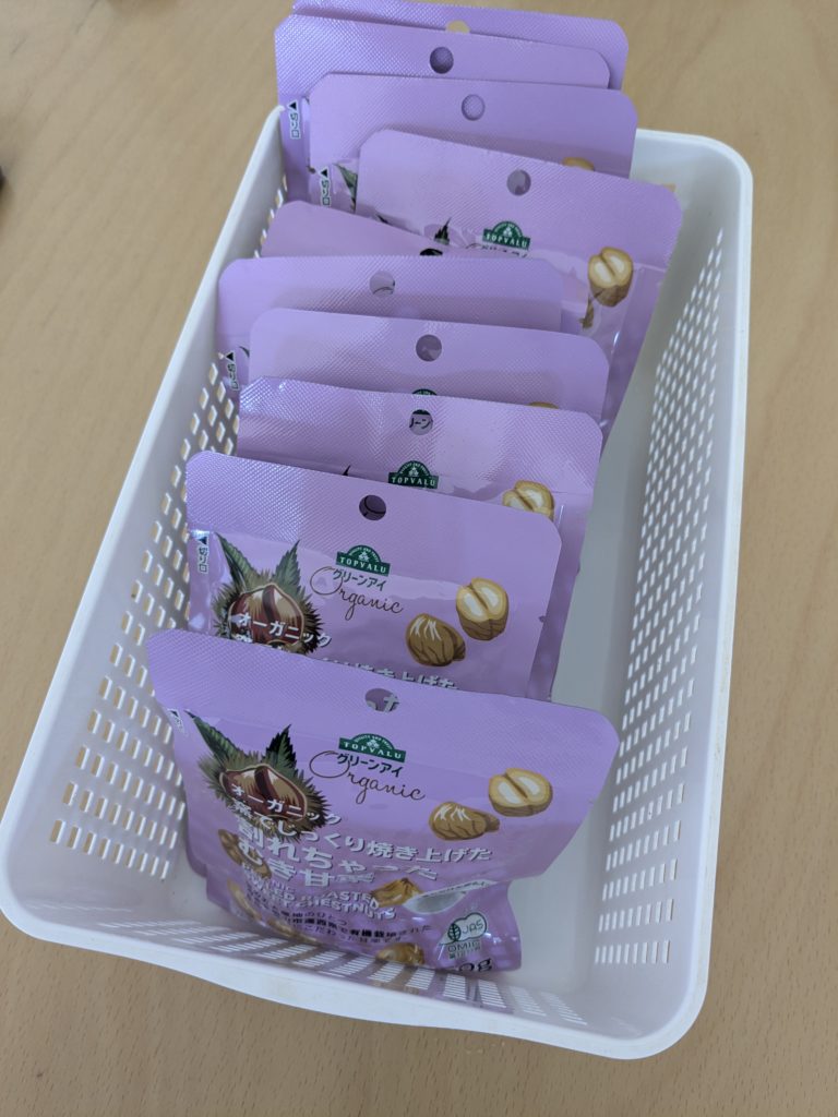 最初は一袋だけ買って、気に入ったので大袋(中に小分けになった栗が入ってる)を購入して常備してます。