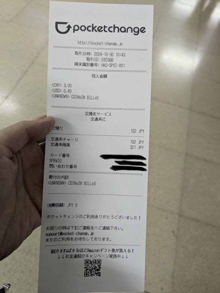 旅行で余った外国のお金を、いろいろな電子マネーや交通カードなどに両替できるのだそうで。