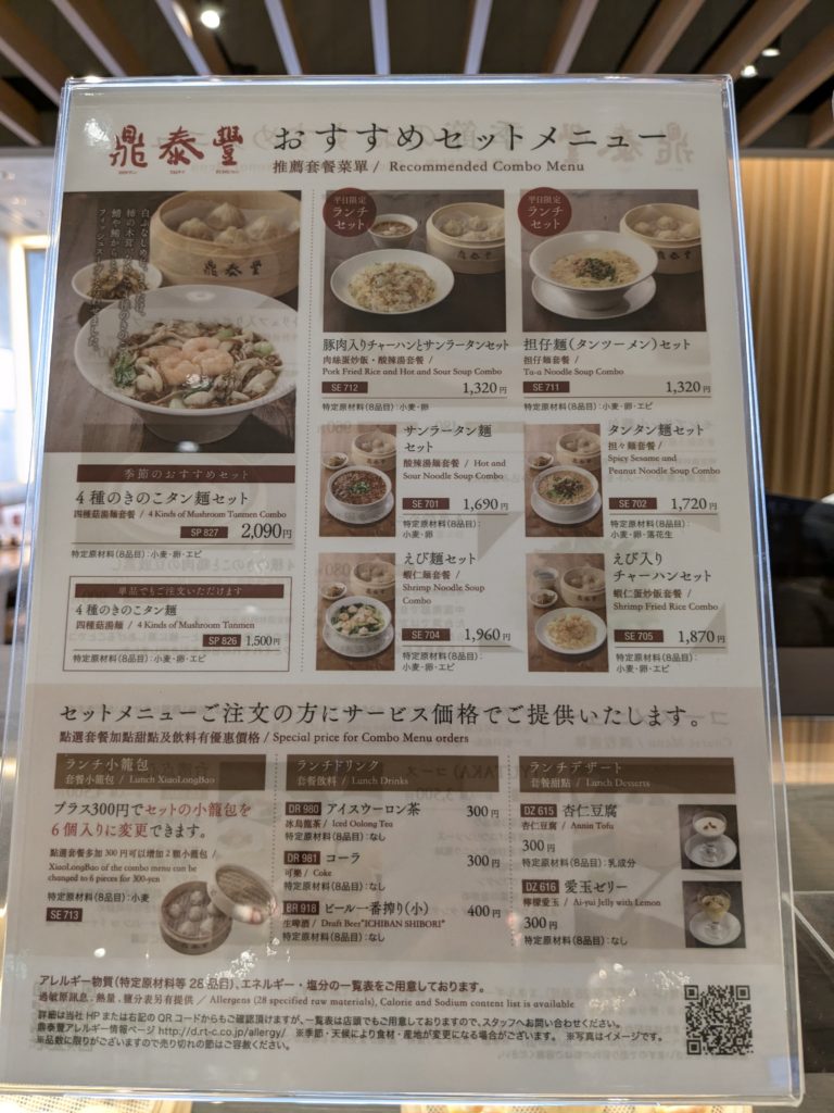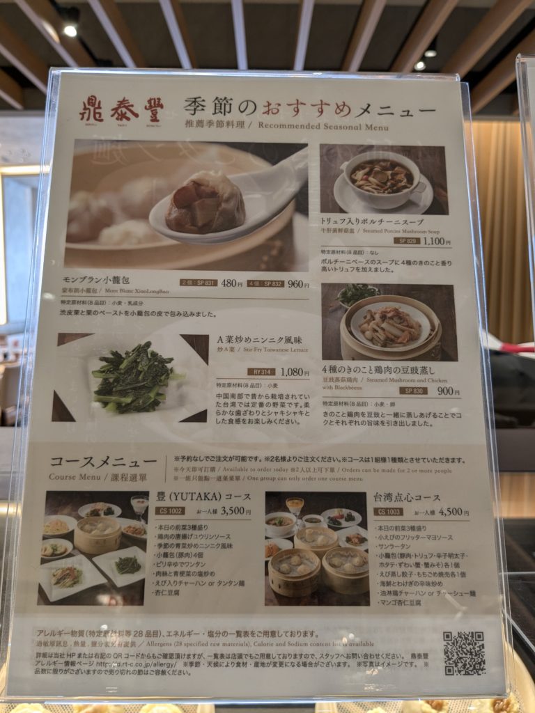 なんか難しい漢字だけども「ディンタイフォン」と読みます。(漢字で入力してもちゃんと変換されてびっくり)