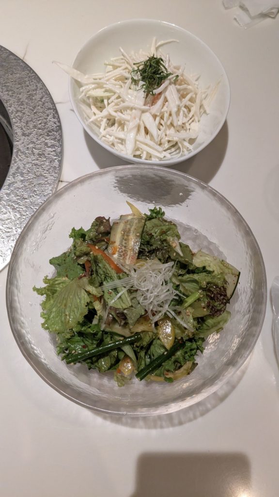 急に炭水化物を食べるのを避けるために、まずはサラダを注文。夫と私とでそれぞれ一つずつ食べました。