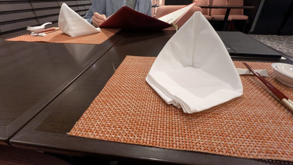 ホテル中華のいいところは、まず静かで落ち着いて食べられる点です。席も広々としてます。