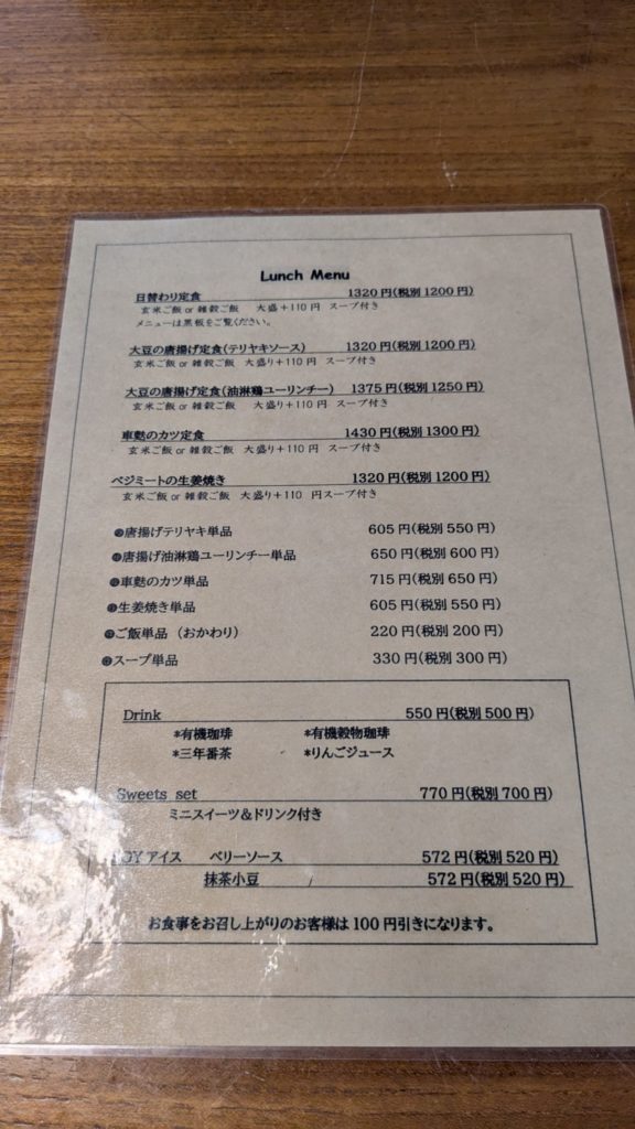 おやさい食堂カラコマはマクロビオティック&ヴィーガンをベースに作られた定食が食べられるところです。