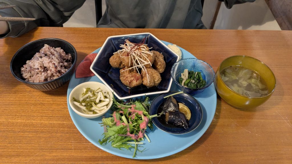 副菜がたくさんついてきて野菜がいっぱい食べられて大満足でした。大豆のからあげもよかったですよ!
