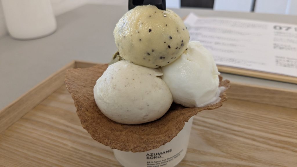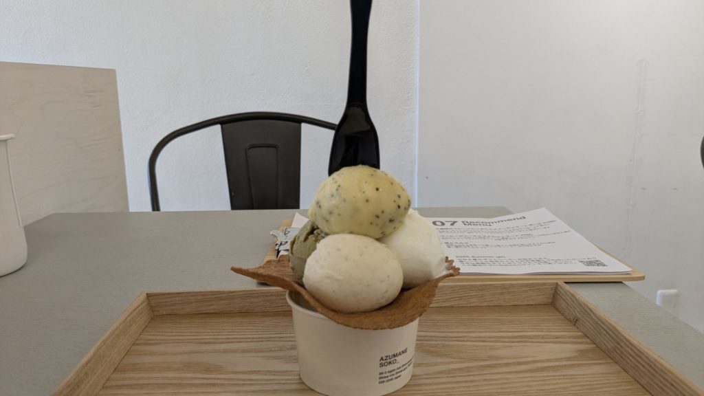 ピスタチオや山のミルクは通常だと追加料金がかかります。でも、この4種盛り合わせでは追加料金がかからないとのことで迷わず選びました。だって、高級そうだから(笑)