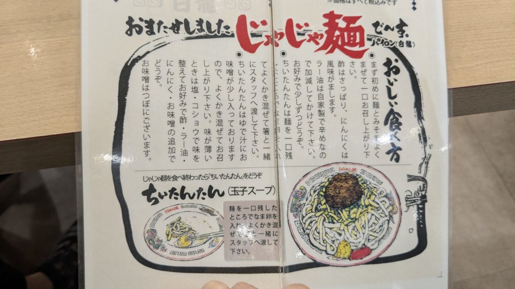盛岡3大麺のひとつ、じゃじゃ麺を食べるなら白龍でまず間違いないでしょう。昔々、友人に連れられて市内の川徳というデパート内にある白龍で食べたことがあります。