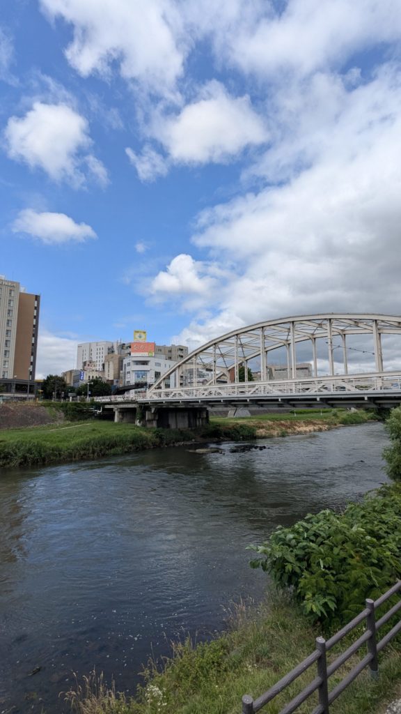 北上川沿いには長い遊歩道があって、散歩にぴったりでした。距離的にもちょうどいいですね。