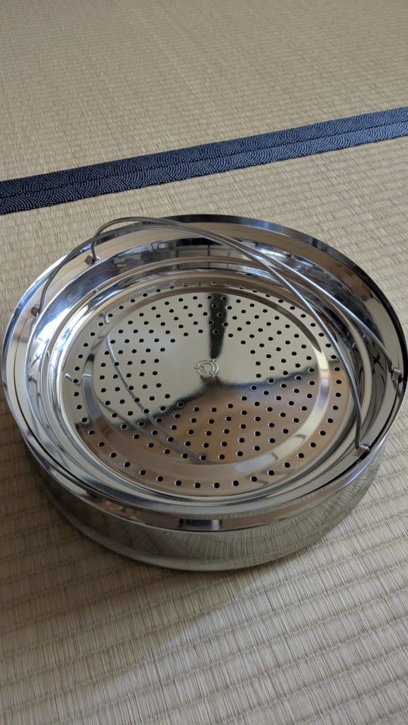 ステンレス製だからちょっとやそっとのことでは壊れないだろうと思います。好みで言うと、木の蒸篭がやっぱりいいんですが、寿命が短いこと、あとは海外へ持って行くとき割れたら困るのでステンレス1択でした。