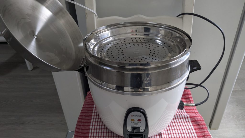 日本で買った電鍋を海外に持って行くなんてかなりレアケースだと思いますが、その電鍋とこの蒸し皿セットだけだったら持ち運びにもそんなに苦労しないんじゃないかということで・・・ステンレスせいろは魅力的だったけどやっぱり嵩張るんですよね😅