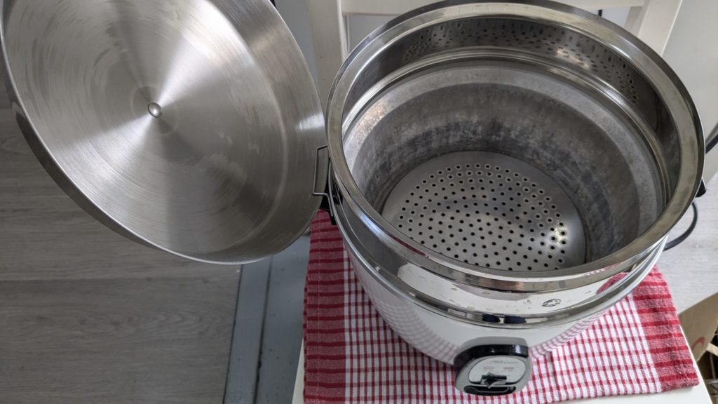 4、蒸し皿を外鍋にすぽんと載せる、または内鍋の上に乗っける方法です。これもやってみたことがないですね。