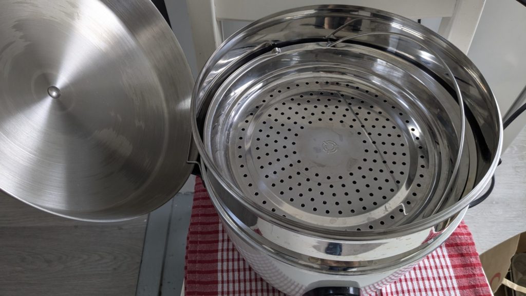 第2候補はステンレスせいろ。蒸し皿セットよりも高さがあって容量は抜群!ただし、そのぶん嵩張る点が気になりました。