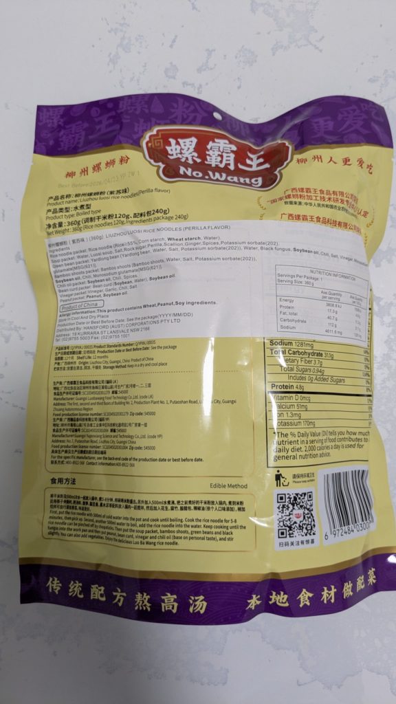 中国出身の夫の話によれば、中国の広西省の柳州市うまれのご当地グルメらしいです。