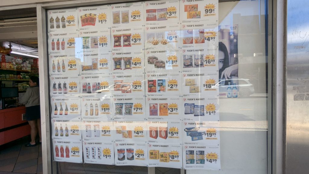 Yuan’s marketの特徴としては食品以外に日用品もたくさん扱っていることでしょうか。所狭しと並んでいて、どこに何があるかはわからない(中華スーパーあるある)のはさておいて、なんでも売ってます。