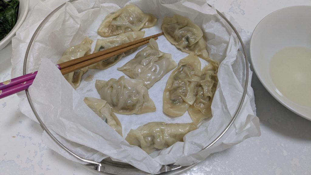 手作りの蒸し餃子